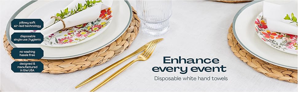 Disposable Linen-Feel Guest Towels [Pack of 300] - Disposable 8" x 17" Cloth-Like Hand Towels, Made In USA - Soft And Absorbent Paper Napkin For Kitchen, Bathroom, Party, Wedding, Or Event
