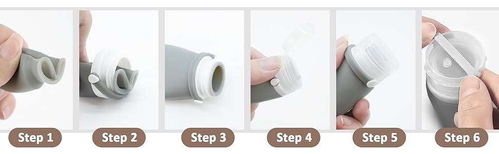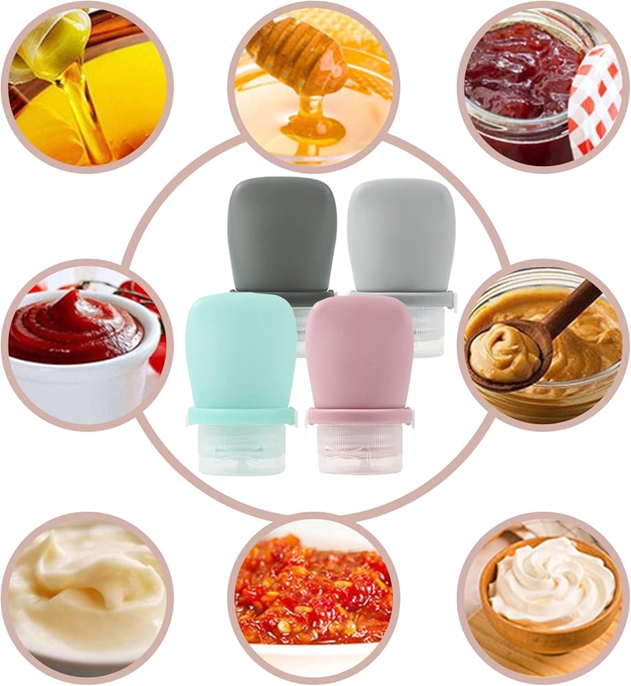 【Suitable for travel】Our silicone sauce bottle measures 2.75x1.77x1.25 in/7x4.5x3.2 cm and each bottle can hold 38ml/1.34oz of sauce, which is so small that it's ideal for traveling use instead of carrying a full bottle around with you.