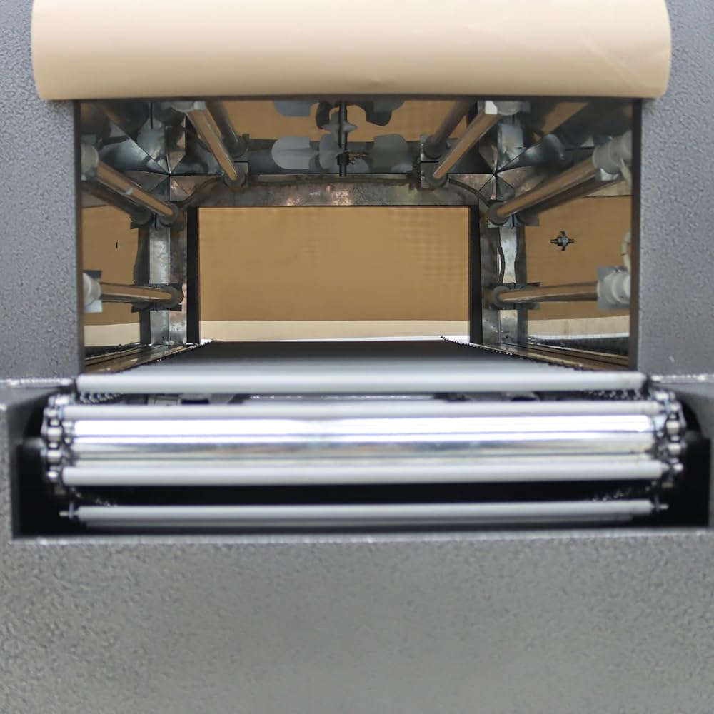 [Professional-Grade Chain Conveyor Belt]: Features a spring steel chain conveyor belt with embedded heat-resistant silicone tubing to isolate heat and prevent shrink film deformation. With a 2cm chain pitch, it securely supports cylindrical or heavy items, making it ideal for large-volume, heavy products (maximum load capacity: 10kg/22lbs). Ensures uniform shrinkage during conveyance for flawless packaging results.
