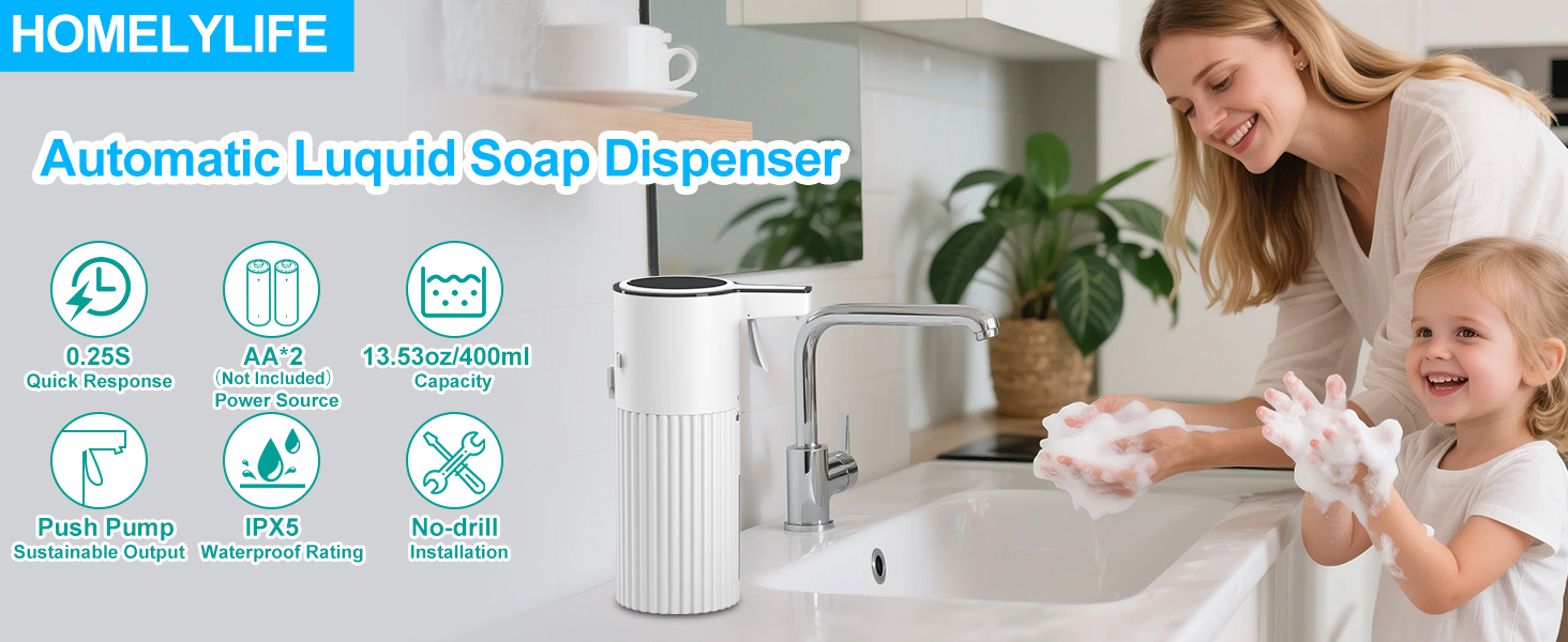 【Wide Applications】This touchless soap dispenser is compatible with a variety of liquids, including liquid soap, hand sanitizer, dishwashing liquid, and Shampoo making it perfect for use in the Kitchen, bathroom, and other public places such as offices, schools, hospitals, shopping malls, hotels, cinemas, etc