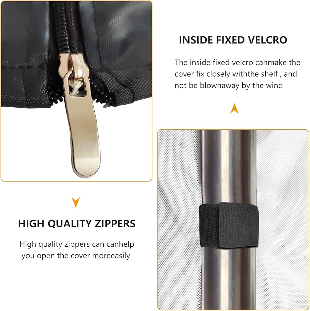 【Fixed velcro on the cover】:Our shelf cover is designed with fixed velcro on the top and inside,you can easily roll up the front of the cover,no matter where the items are placed on the shelf,it can be easily accessed.And inside fixed velcro make the cover fix more closely with the shelf,it can protect your shelves and items even in windy days.