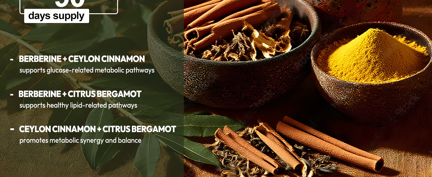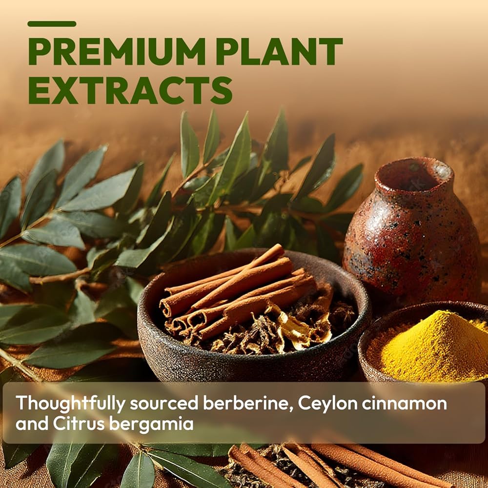 The Synergistic Metabolic Trio. A premium blend of 600mg Berberine, Bergamot, and Ceylon Cinnamon. This professional-grade formula works in tandem to support systemic balance. It is the perfect natural companion for those navigating fitness journeys, intermittent fasting, or mindful eating protocols.