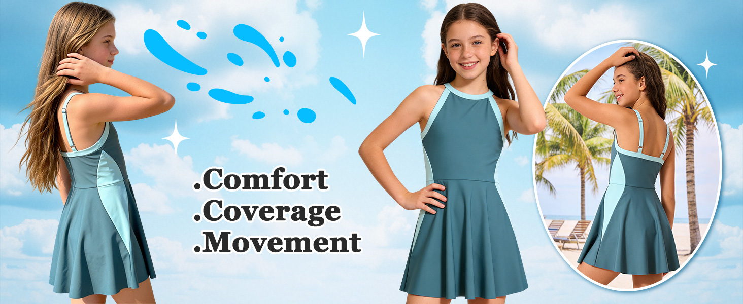 Adjustable Straps & Modest Design: This girls' swimsuit features adjustable wide shoulder straps that can be personalized to different body types, providing better support and a better fit. The shoulder straps are not prone to shifting, reducing pressure and ensuring comfort while swimming and playing