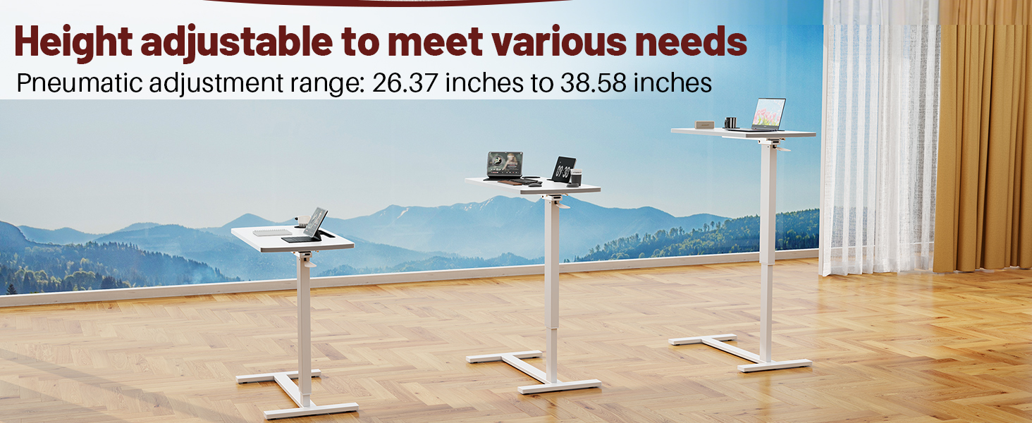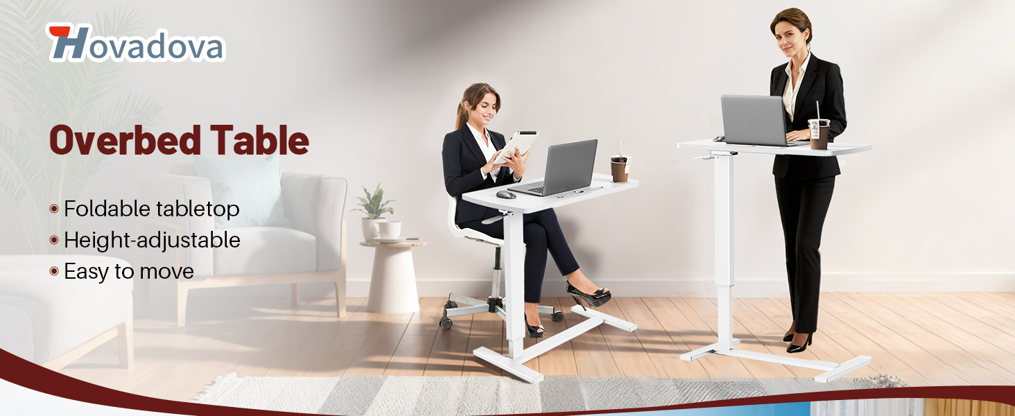 Gas Spring Pneumatic Lifting System: This Hovadova Overbed Bedside Table features a smooth pneumatic lifting system that allows for easy adjustment of height from 26.77 inches to 38.78 inches with one hand. Simply press the handle to release and raise, or press the handle and push the table down to lower. It is perfect as a computer cart, sofa table, or bedside table, and can seamlessly adapt whether you are sitting, standing, or lying down.
