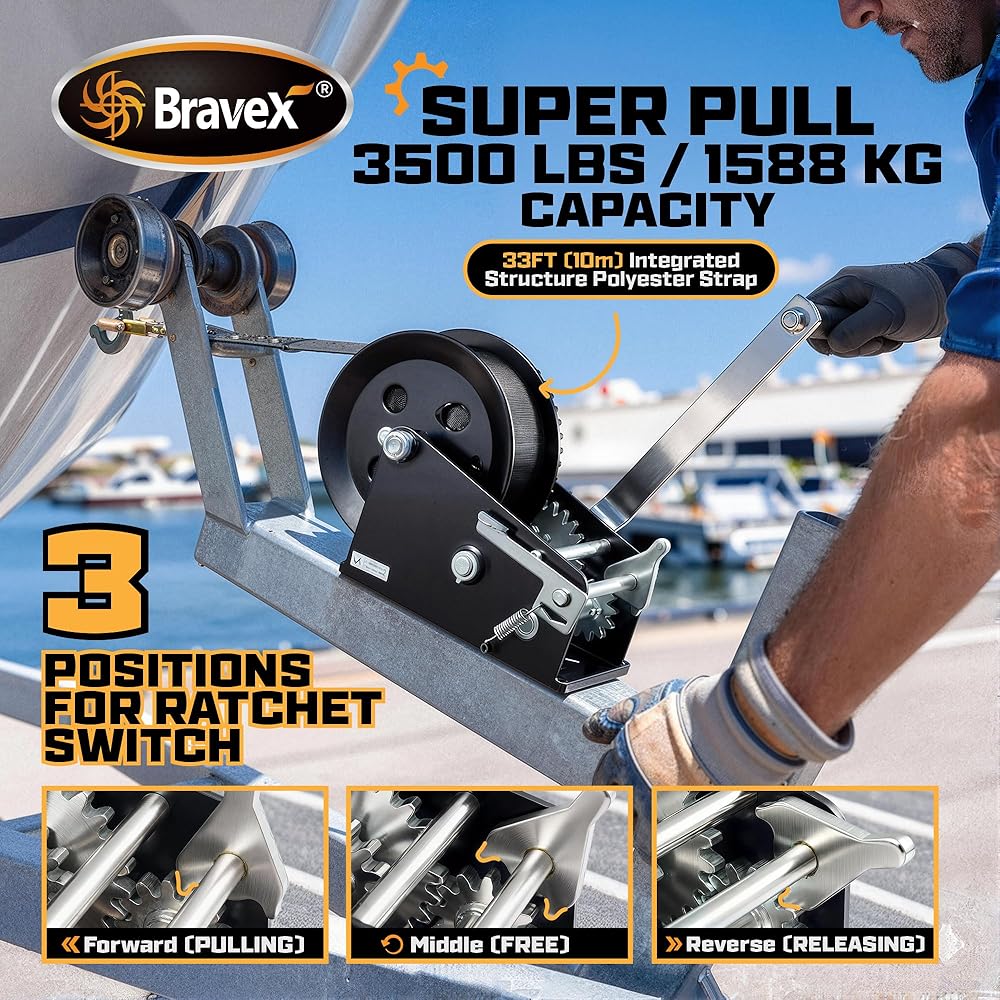 Heavy Duty Steel Construction, Can be used on boats, trailers, and pickup trucks Capacity: 3500lbs