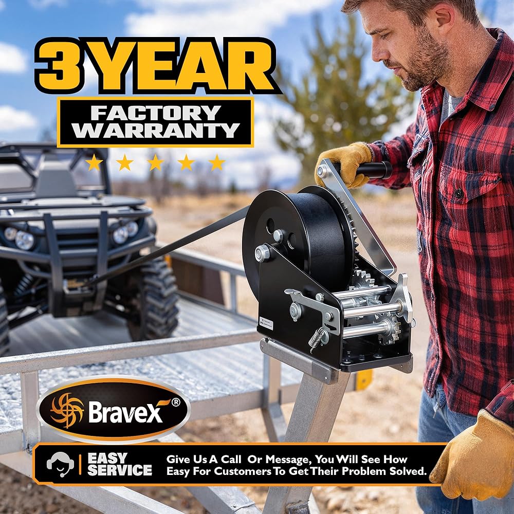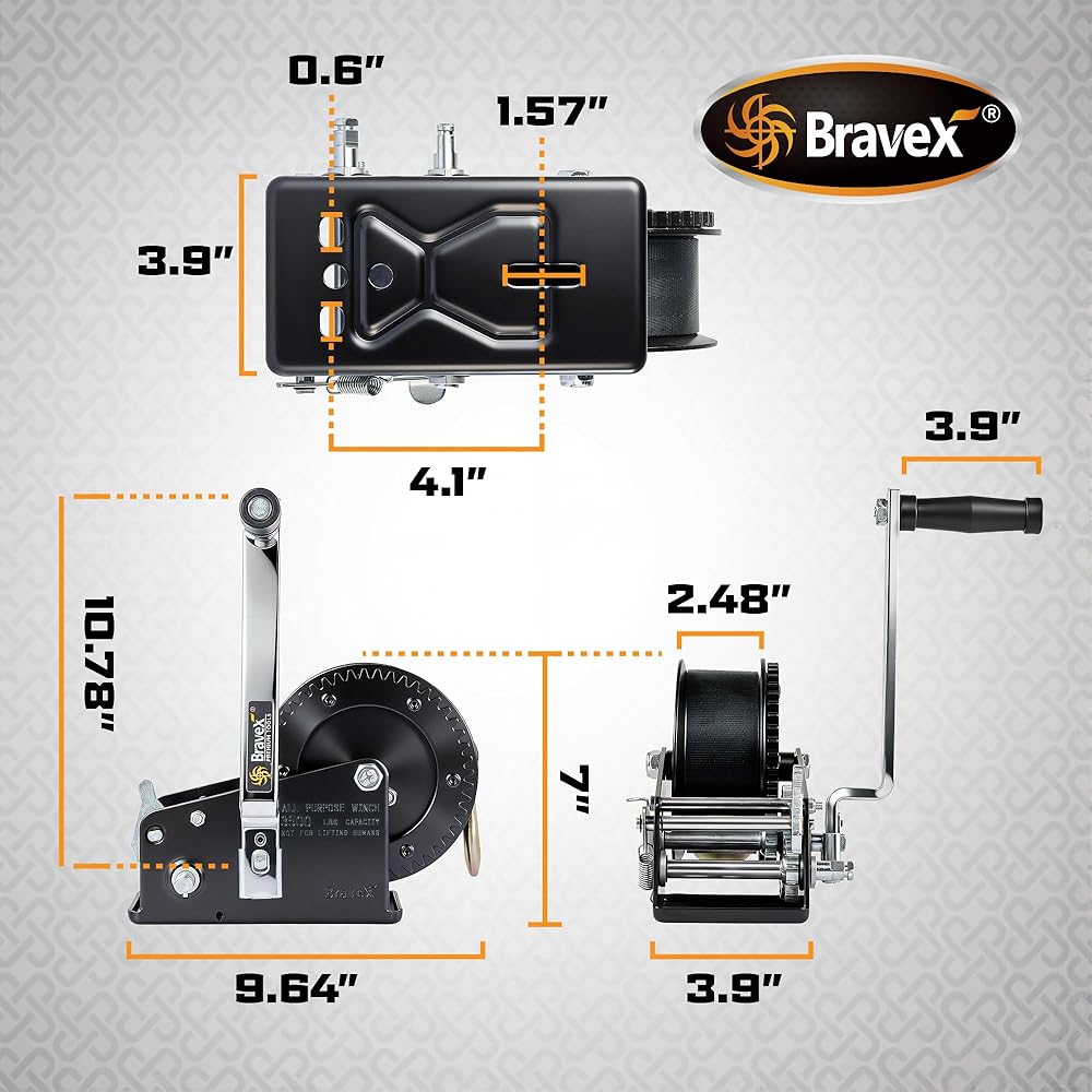 【Durable】: Professional galvanized treatment, resistant to bad weather, high-carbon steel hardened gear, primary speed ratio: 4:1/8:1 Gear Ratio,The speed can be adjusted according to the use of different handle position. corrosion resistance, long service life, winch equipped High-strength anti-slip and wear-resistant strap, strap size: (2in x 33ft).