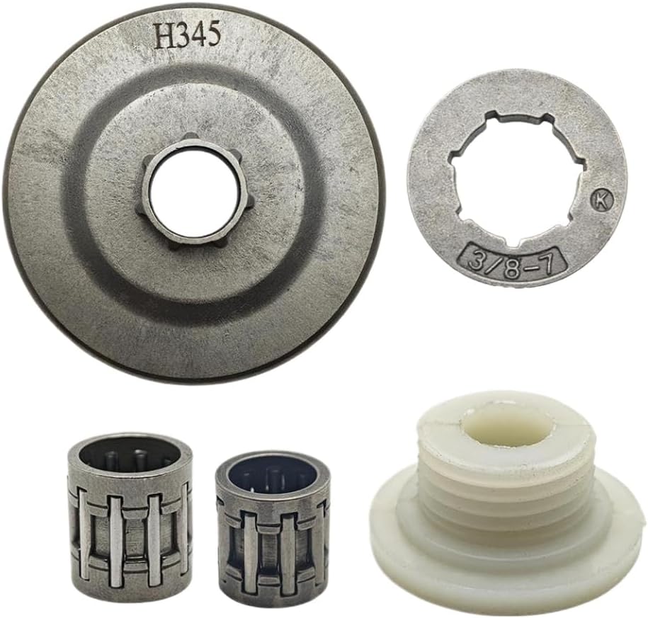 This clutch drum worm gear assembly is compatible with chainsaw models 350, 353, 357, 357XP, 359, and 346XP.The set includes a sprocket rim, piston, bearing, clutch drum, and worm gear.Part number: 503912902.