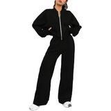 • Two piece loungewear outfits for women features a relaxed-fit bomber jacket, designed with full-length front zipper closure, dropped shoulders, long balloon sleeves, and convenient side pockets in both pieces for enhanced functionality