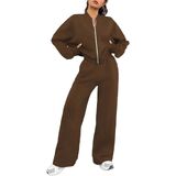 Women's Two Piece Zip Up Lounge Sets Fall Long Sleeve Jacket High Waist Wide Leg Pants Travel Matching Sweatsuits Sets
