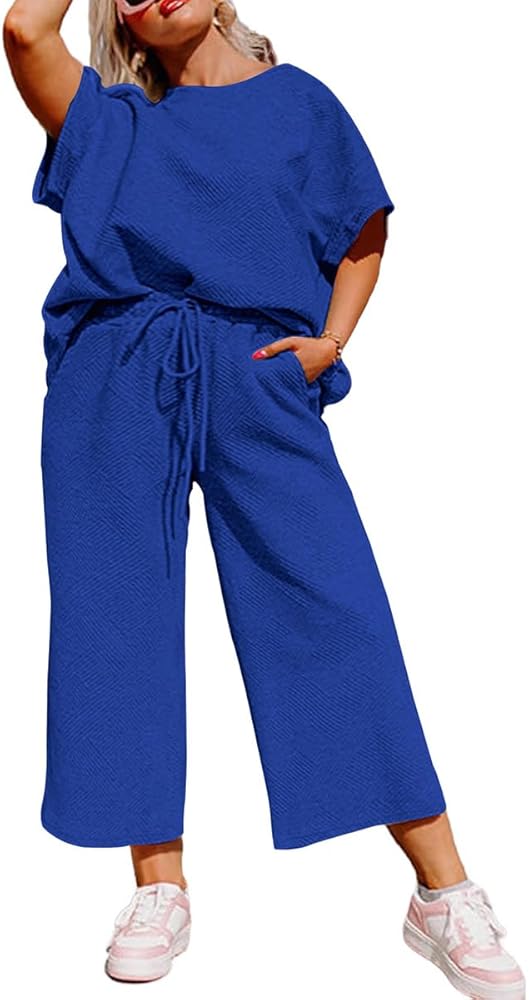 • Features: Plus Size, Solid, Casual, Loose, Short Sleeve, Pullover, Fashion Baggy Wide Leg Cropped Sweatpants with Pockets, Sexy Loose Tops, Lightweight, Stretchy, Breathable, Loose Two Piece Sets, Crewneck Lounge Sets, 2 Piece Outfits for Womens Soft and Comfy Fitting