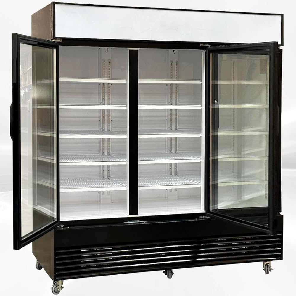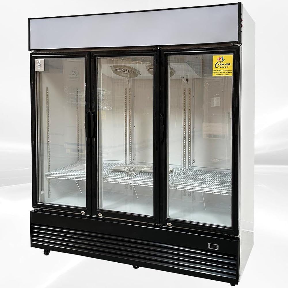 This NSF Certified 3 glass doors Commercial Display refrigerator has a dimensions of 74 in Length X 26 in Depth X 81 Height, Its capacity is 69 Cu.ft. Crafted with high quality temperature insulation material, this item will keep all your kitchen ingredients cooler and fresher. The led lights included will help you keep track of inventory easily.