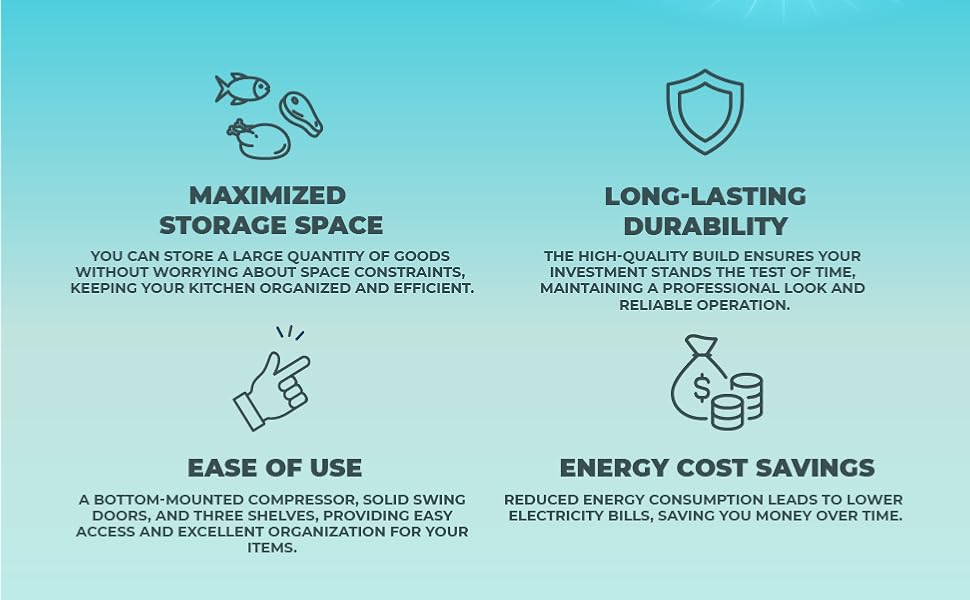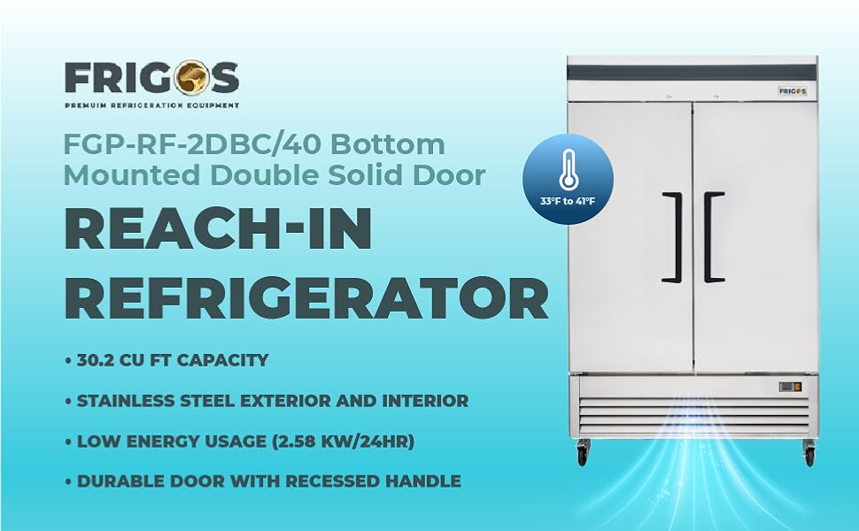 Optimal Temperature Maintenance: Maintaining a consistent temperature range of 33°F to 41°F, the commercial refrigerator ensures that your items are stored in optimal conditions, guaranteeing freshness in your reach-in fridge.