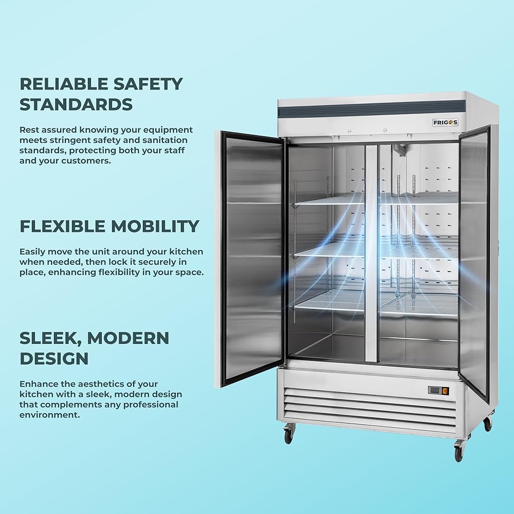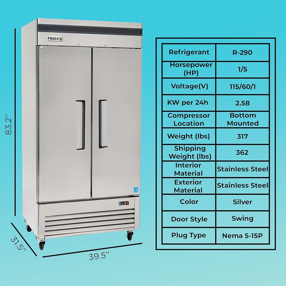 Frigos Premium FGP-RF-2DBC/40 40" Reach-In Refrigerator Double Solid Door 35 Cu Ft Silver - Ideal for Commercial Kitchen Commercial Storage Capacity - Included Liftgate