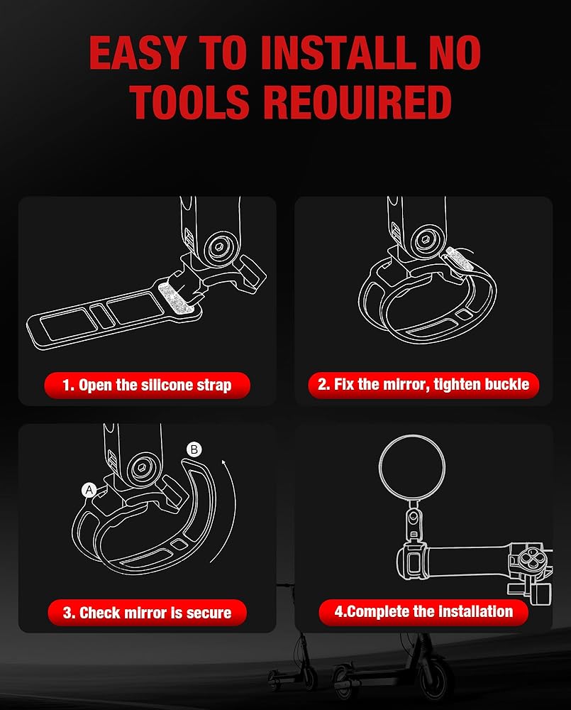 【ATTENTION】Includes 1 pair of mirrors for easy installation on both left and right sides. Please adjust the mirrors to ensure they do not block your turn indicators. Suitable only for riders aged 16 and up, and installation should be performed by an adult. If you have any questions or issues, feel free to contact us—our customer service team is always ready to help.