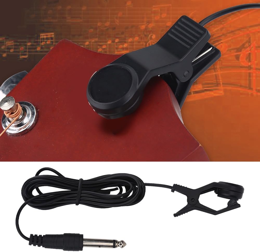 Pickups: This Guitar Pickups Clip-on Microphone is designed with a capacitive microphone and is suitable for a variety of string instruments for vocals/picking. In addition, the microphone has a wide tone and low noise influence, which is compact and portable, convenient and practical. Features: Built-in vibration sensor, responds to vibration, can be converted into electrical signals and transmitted to the tuner via cable