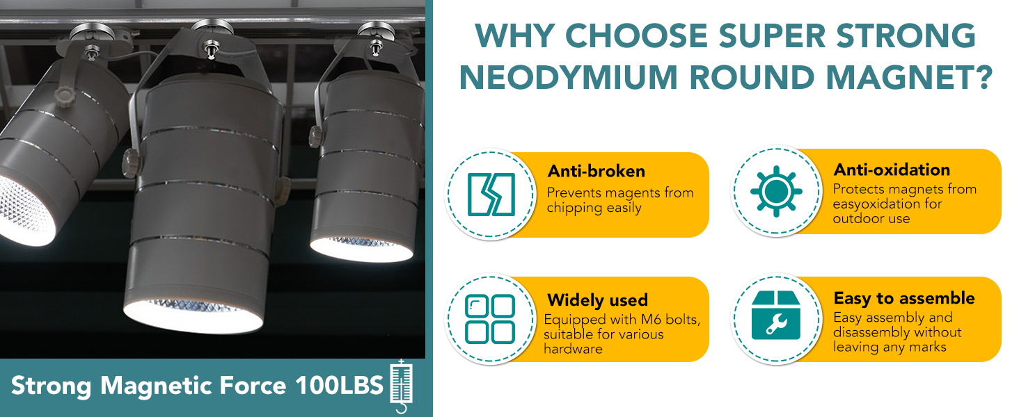 【Special Durable Materials】This installation magnet is neodymium magnet with metal bases, 32mm . It has three layers of good anti-corrosion coating and a steel shell, which is durable and has high demagnetization, corrosion resistance, and oxidation resistance.