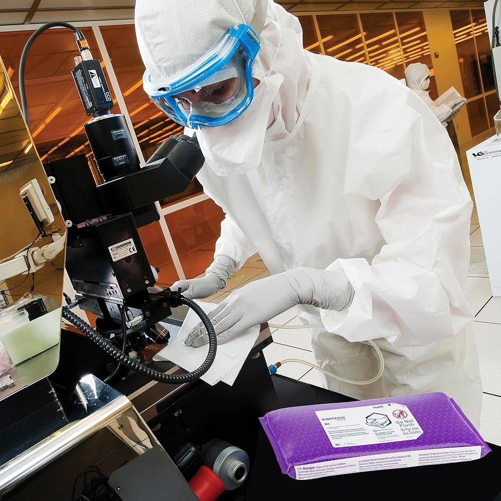 Do you require a wiper for a sterile environment, like clean rooms, medical equipment manufacturing or the biotech industry? Kimtech Pure W4 Sterile PreSat Alcohol Wipers could be right for your business. The 100% polypropylene sterile wipers come pre-saturated with 70% isopropyl alcohol (semiconductor grade) and 30% deionized water, in a resealable pouch. They are specially designed for ISO Class 4 and higher cleanrooms and are low lint (good for environments where “lint free” is important). These disposable wipers are ideal for use in pharmaceutical, high-tech, biotechnology and medical-device industries that require sterile alcohol wiping for critical tasks.