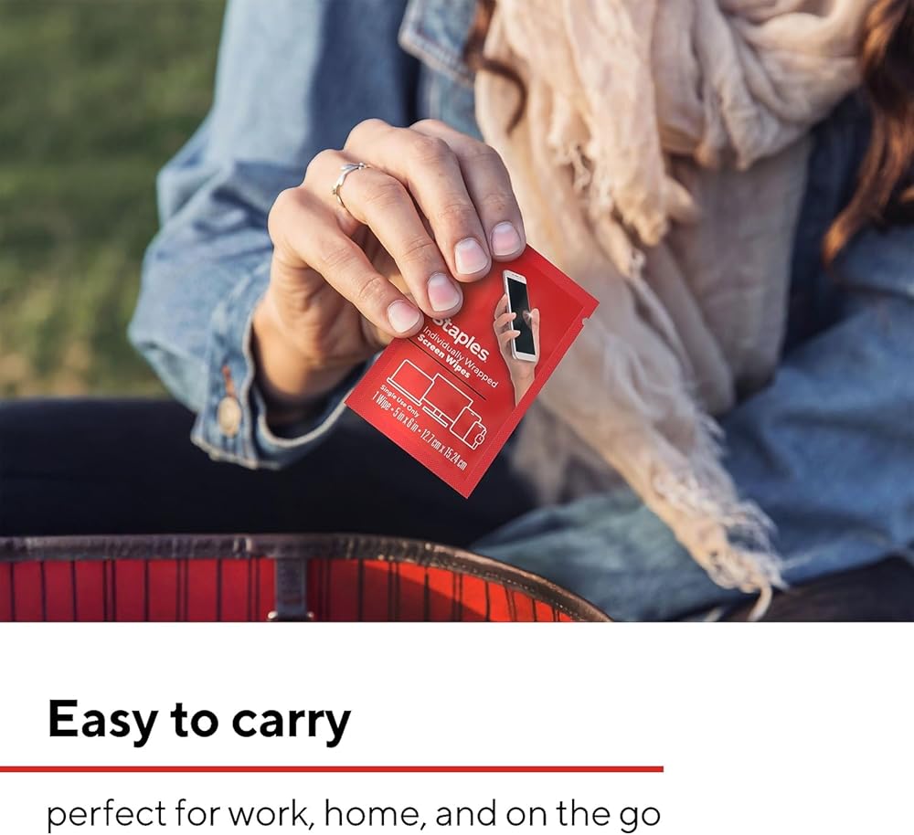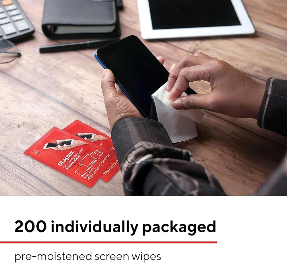 • Keep your screens spotless with Staples TECH Individually Wrapped Screen Wipes