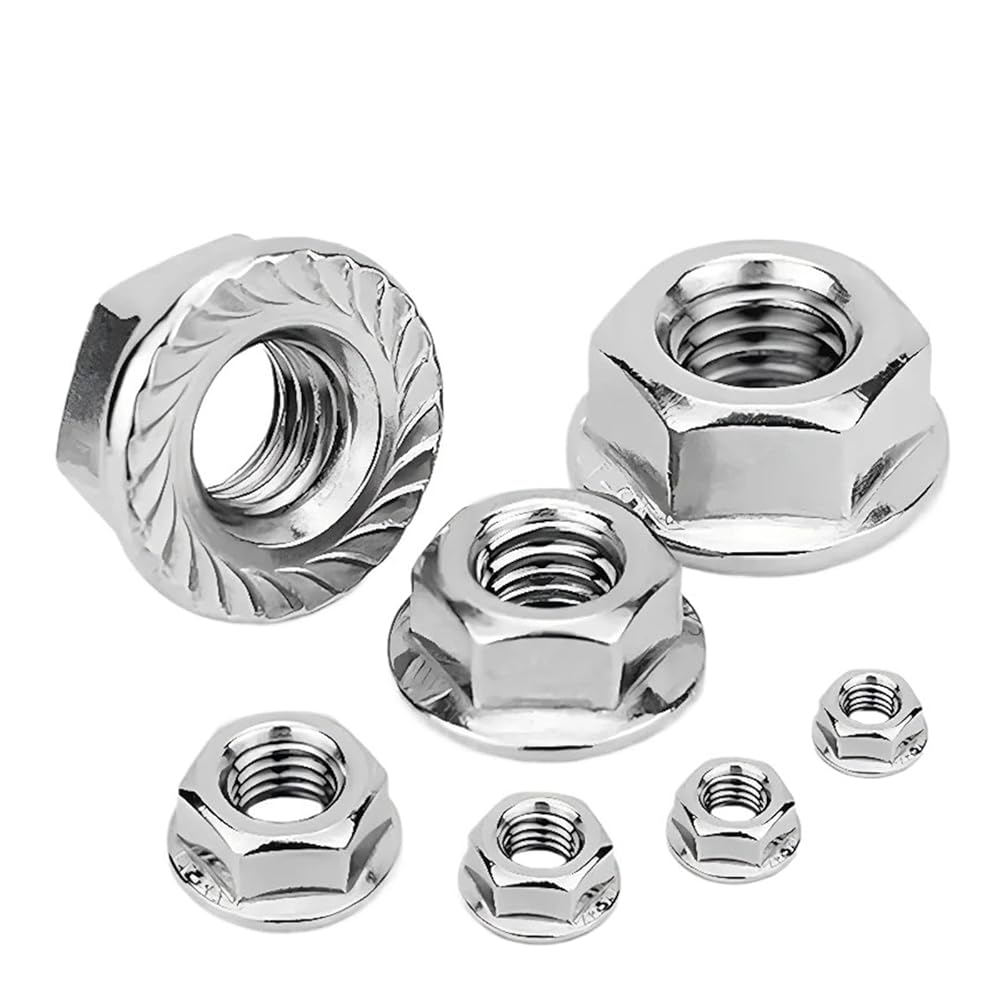 Aacurokei 50 Pieces M3 M4 M5 M6 M8 M10 M12 M16 M20 304 Stainless Steel Hexagon Hex Head Serrated Spinlock Lock Flange Nuts DIN6923