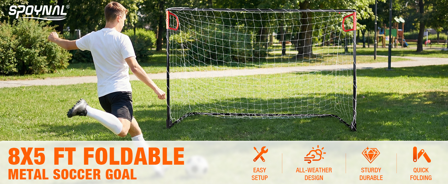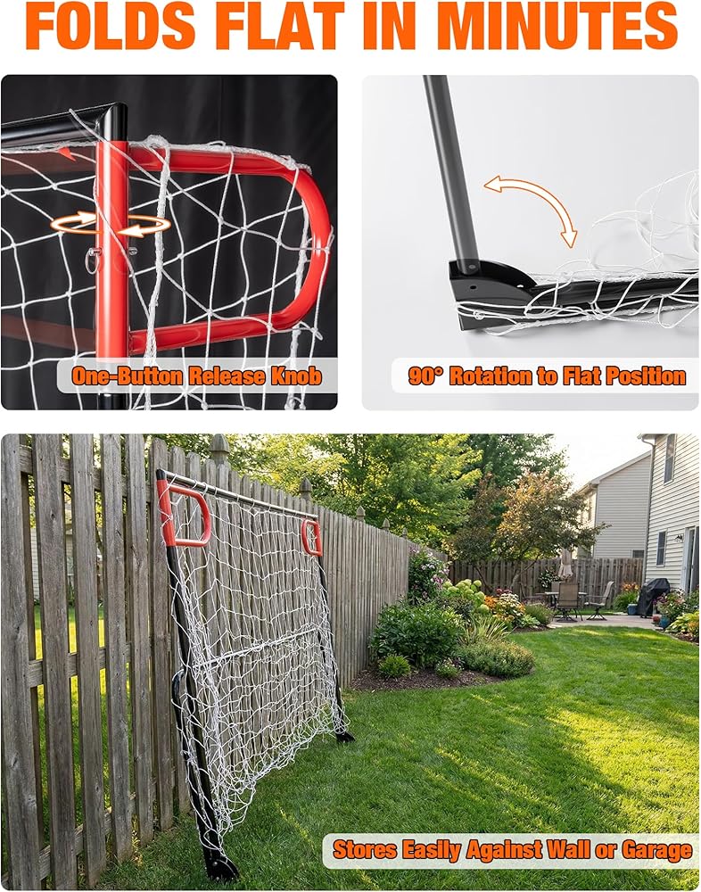 RECLAIM YOUR BACKYARD WITH FOLDABLE DESIGN: Transform your yard from a game day to a play day in minutes. Our soccer goal folds completely flat to a slim profile, storing effortlessly against a garage wall or in a shed. This smart space-saving design means the fun doesn't have to come at the cost of your precious outdoor living area.