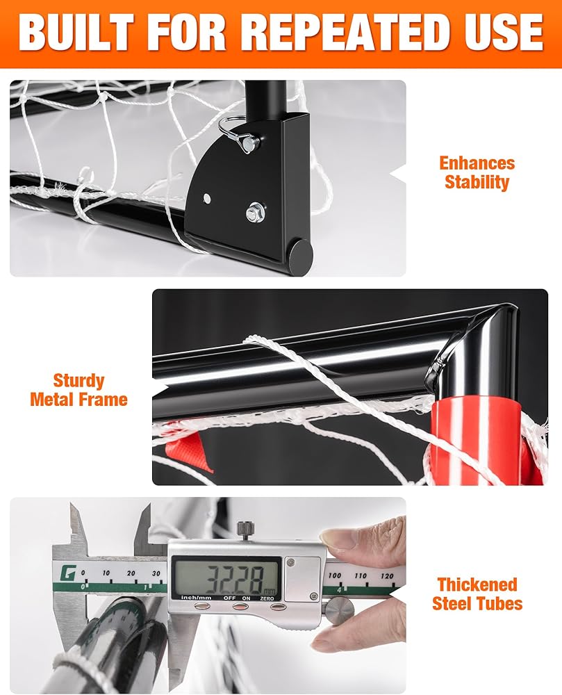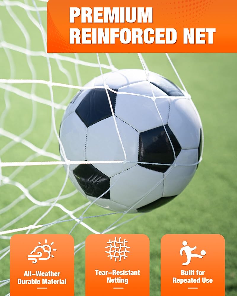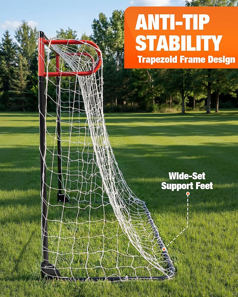 ENJOY CONFIDENT, STABLE PLAY ON ANY SURFACE: Engineered with a wide-stance trapezoid support frame, this goal is built to stay upright. It provides exceptional anti-tip stability on grass, turf, or uneven ground during powerful shots and saves, ensuring safety and uninterrupted play for everyone involved.