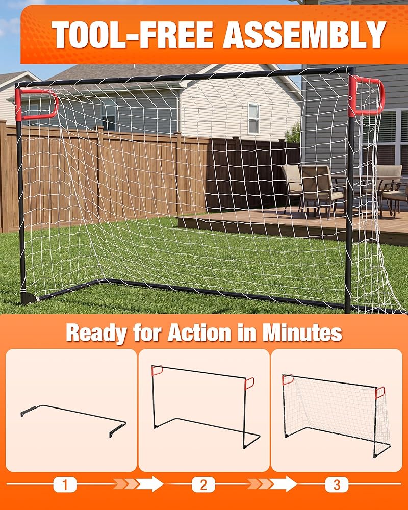 FROM BOX TO GOAL IN UNDER 10-20 MINUTES: Skip the complicated assembly. Our tool-free setup features intuitive snap-lock pins and color-coded connectors. You can be ready for your first kick quickly and easily, turning any free afternoon into an impromptu training session or friendly match without the setup hassle.