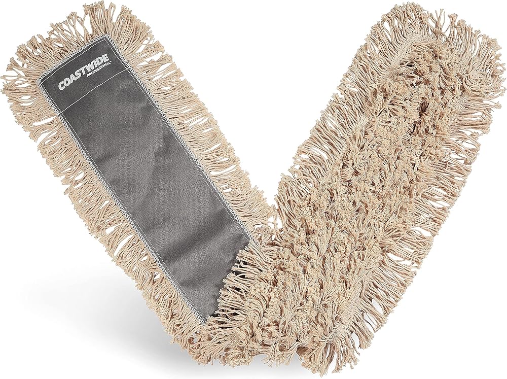 Add a durable cleaning solution to your janitorial cart with this Coastwide Professional cut-end white cotton dust mop head. Sweep away dust and debris with this dust mop head. The cotton yarn features fine threads to capture particles, while the reinforced stitched ends and binding edge ensure lasting use. Launderable fibers allow easy maintenance. Designed to work with Coastwide Professional handles and frames, this Coastwide Professional cut-end white cotton dust mop head is simple to set up. Keep your floors free of dust and debris with this cut-end cotton dust mop head. For dust and debris removal on all standard hard surface flooring. Comes in white and made of cotton. 48" width provides plenty of cleaning capacity.