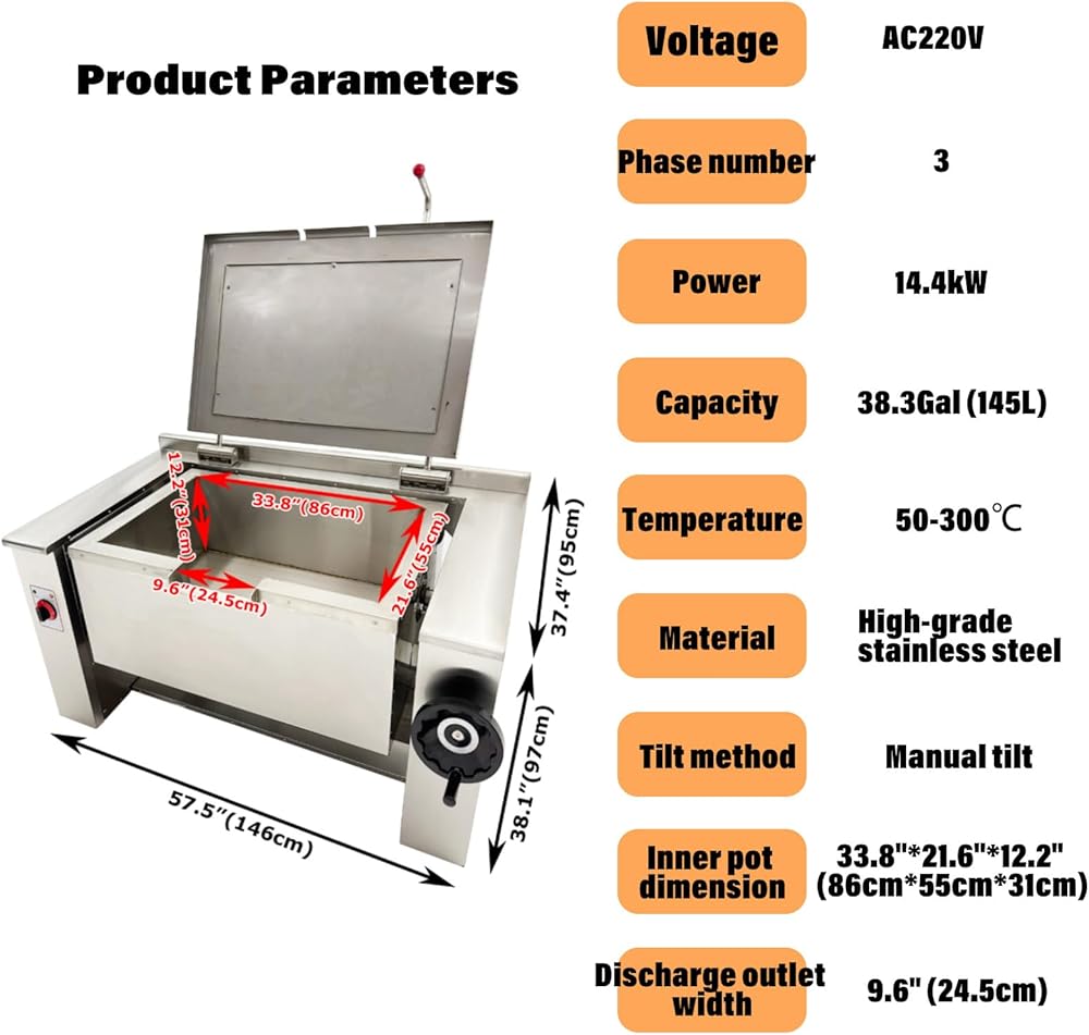 This Electric Tilting Skillet Braising Pan features a 0-90° tiltable pot design for easy pouring out and cleaning, powered by a 14.4kW high-capacity heating system enabling rapid heating for diverse cooking modes. Constructed with high-grade stainless steel, it ensures durability and operational safety. Ideal for high-volume commercial kitchens, chain restaurants, hotels, and prepared food factories, this unit efficiently handles large-volume cooking tasks including stir-frying, braising, soup boiling, and simmering.