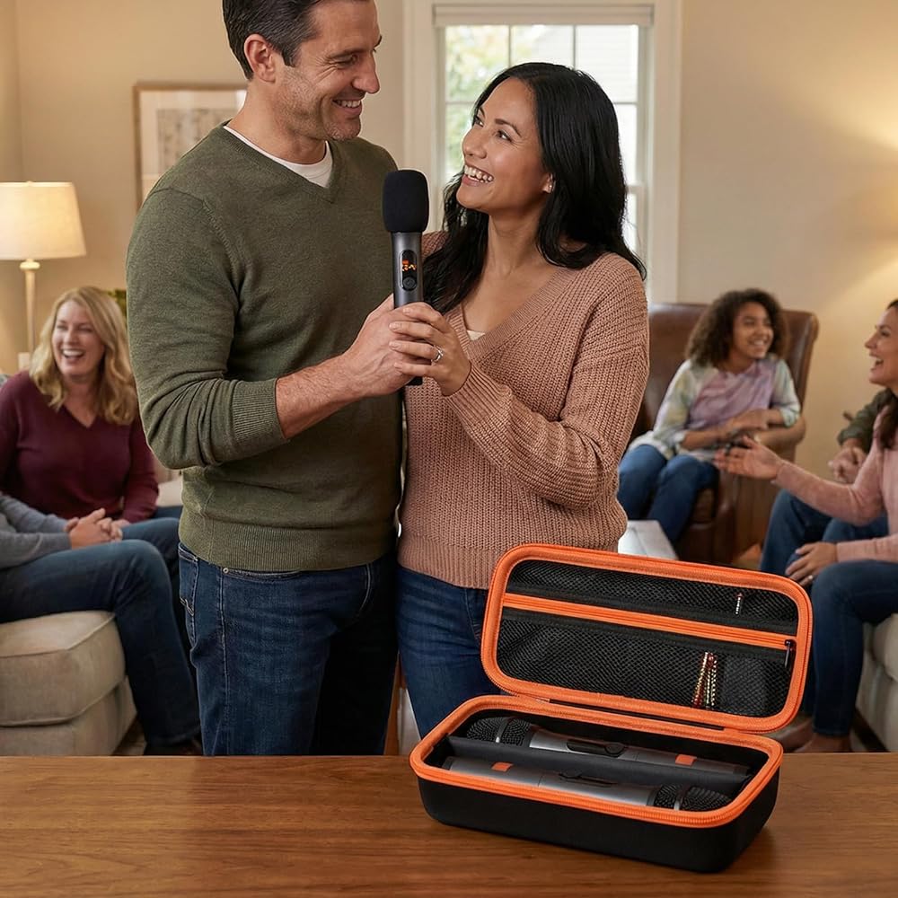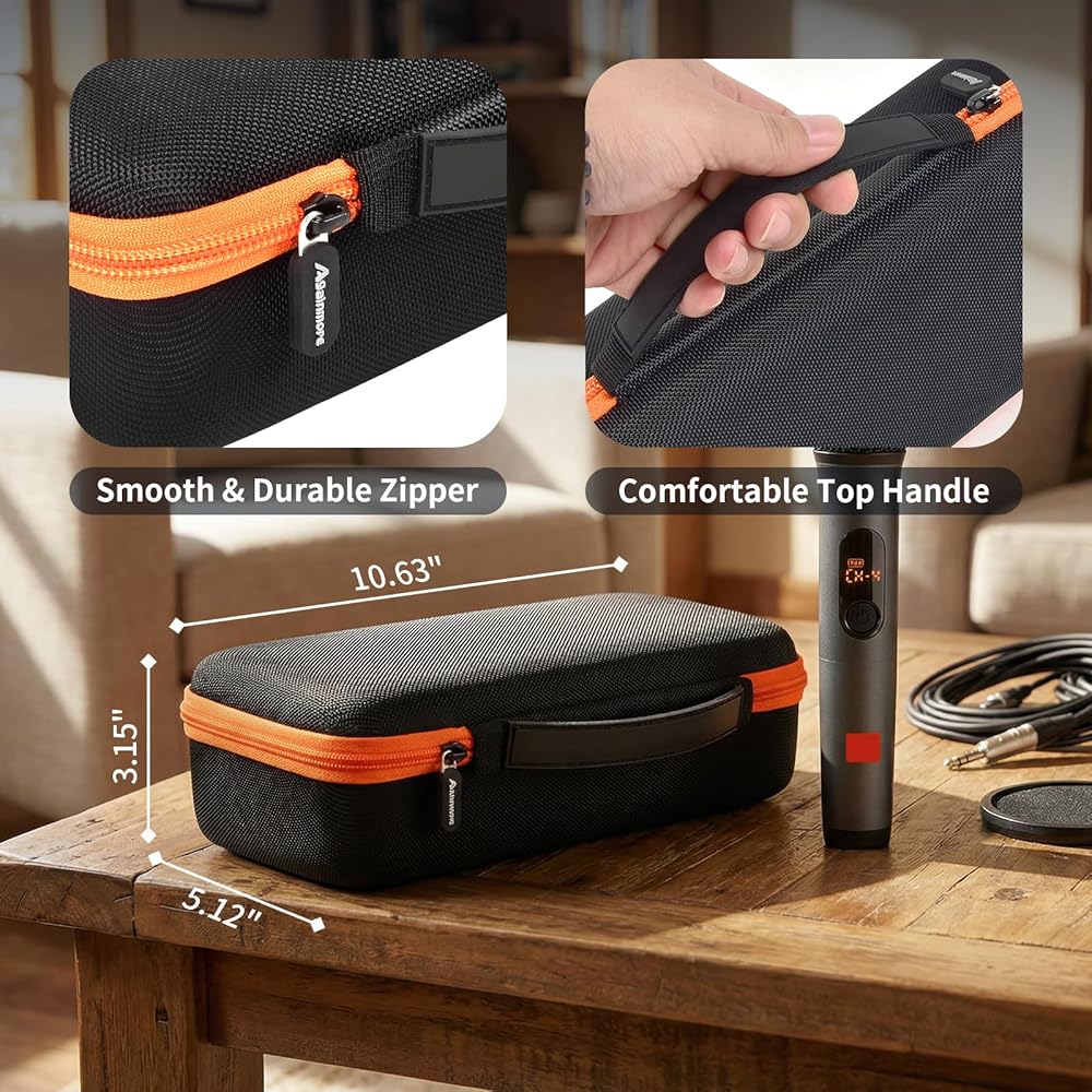 Easy-Carry & Quick Access Handheld Cordless Microphones Box: Portable carrying case for JBL party box microphone features a comfortable top handle and smooth, durable zipper for fast grab-and-go use.Easy to open for quick setup, pack-up, or AA battery changes during karaoke sessions. Compact handheld wireless microphones case fits neatly on shelves or in travel bags, perfect for karaoke parties, family gatherings, and on-the-go use