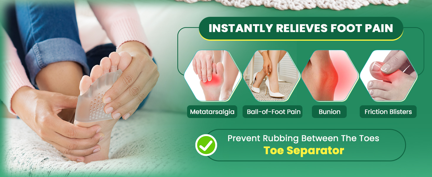 【Relief for Long Days】: Nurses, teachers, retail workers, or anyone who stands for hours—these metatarsal pads for women & men cushion the ball of the foot to reduce soreness and burning, so you can get through your shift without limping home.