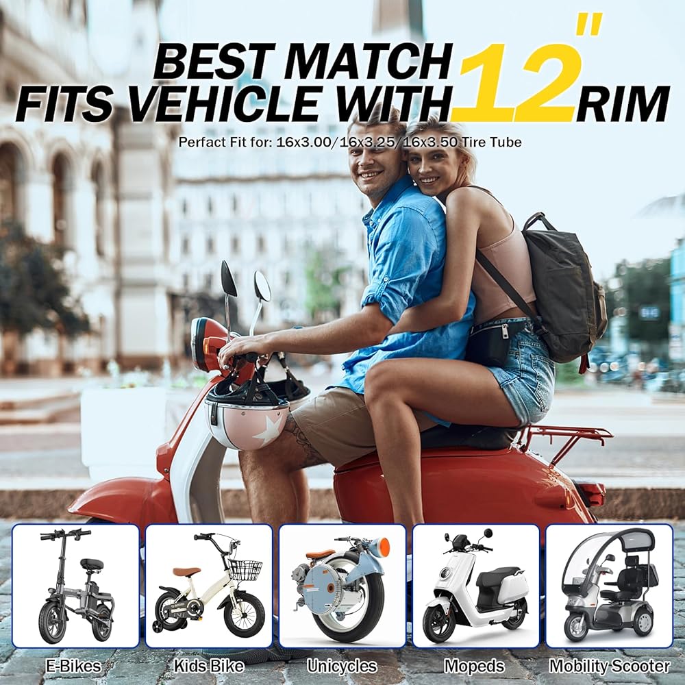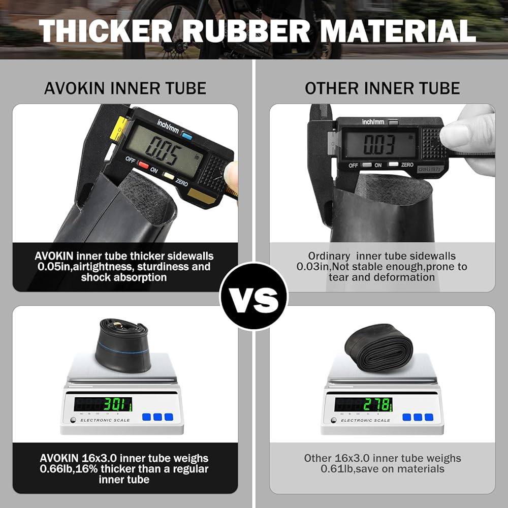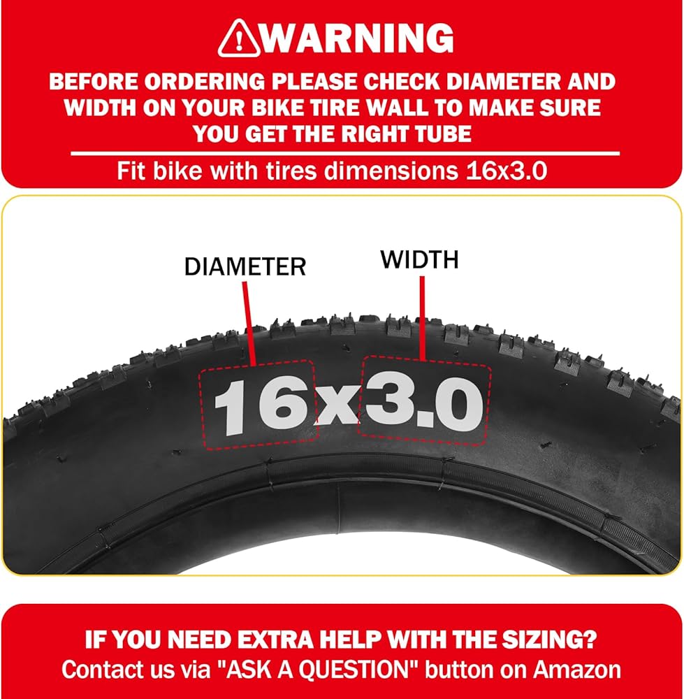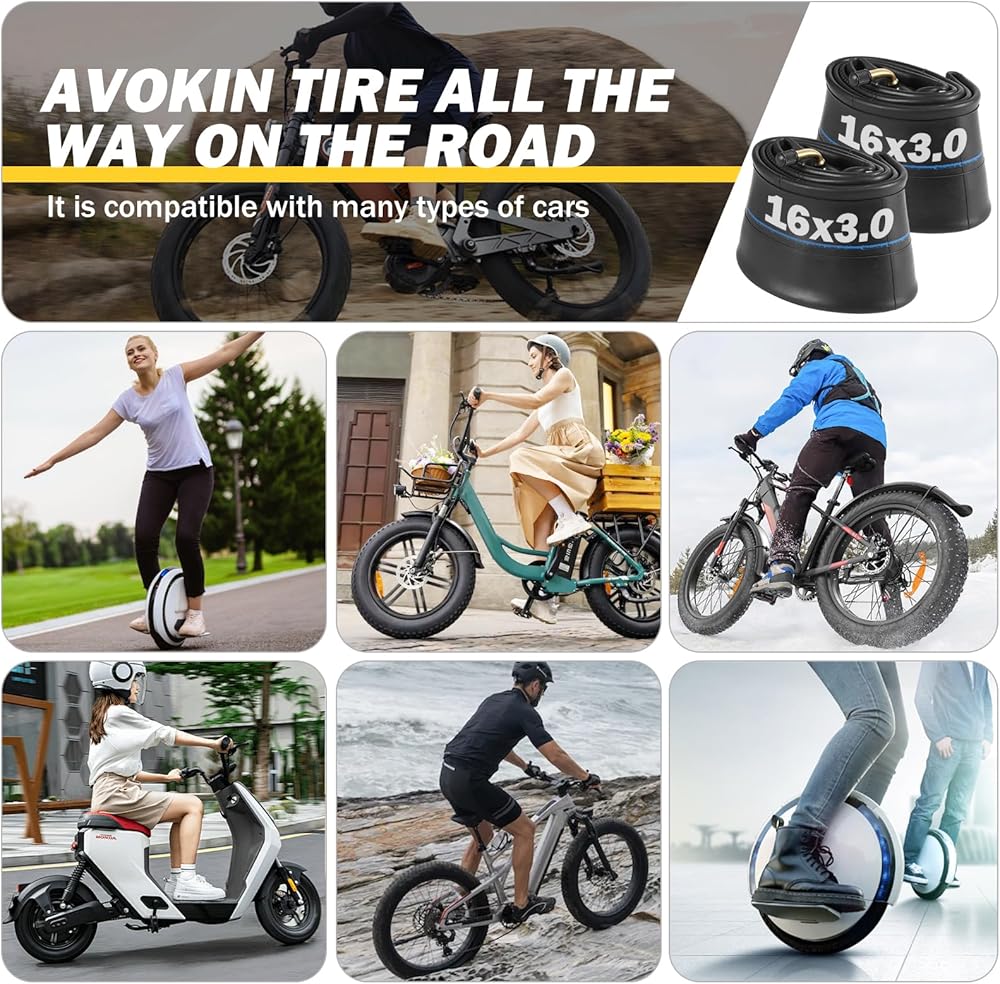 Size: 16x3.0 Inner tube suitable for all tires between 3 " to 3.5" width,16" inner tire compatible with mountain bikes, road bikes, cruiser bikes, e-bikes