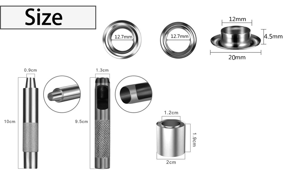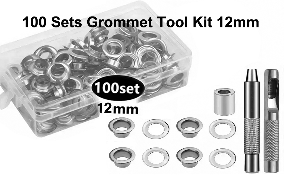 - COMPLETE KIT: Professional grommet installation set includes 100 metal grommets sized 1/2 inch and all necessary installation tools