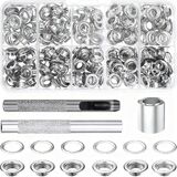 1/2 Inch Grommet Tool Kit 100 Sets - Grommet Eyelets Kit with Punch, Metal Grommets in Silver for Fabric, Leather, Canvas (Silver)