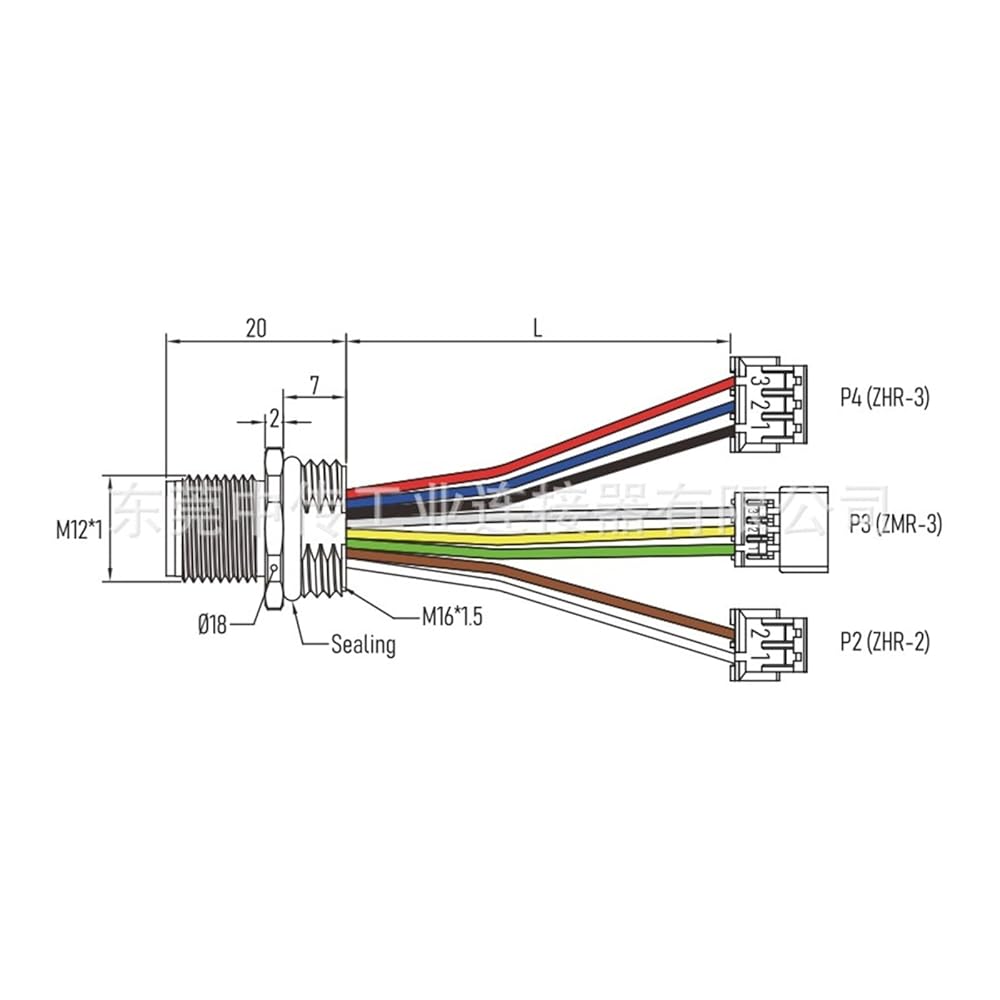 M8 Connector 8pin A-Code Front Lock Tail Connected to JST0.Aviation