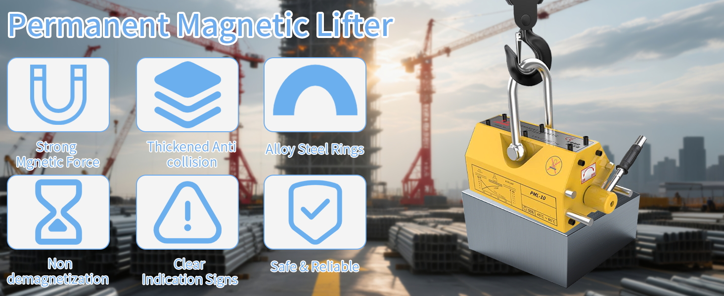 Versatile U-Shaped Groove: The U-shaped bottom groove fits both flat plates and round steel. The lift magnets enhances versatility, making the lifter reliable for construction, mining, manufacturing, and other industries.