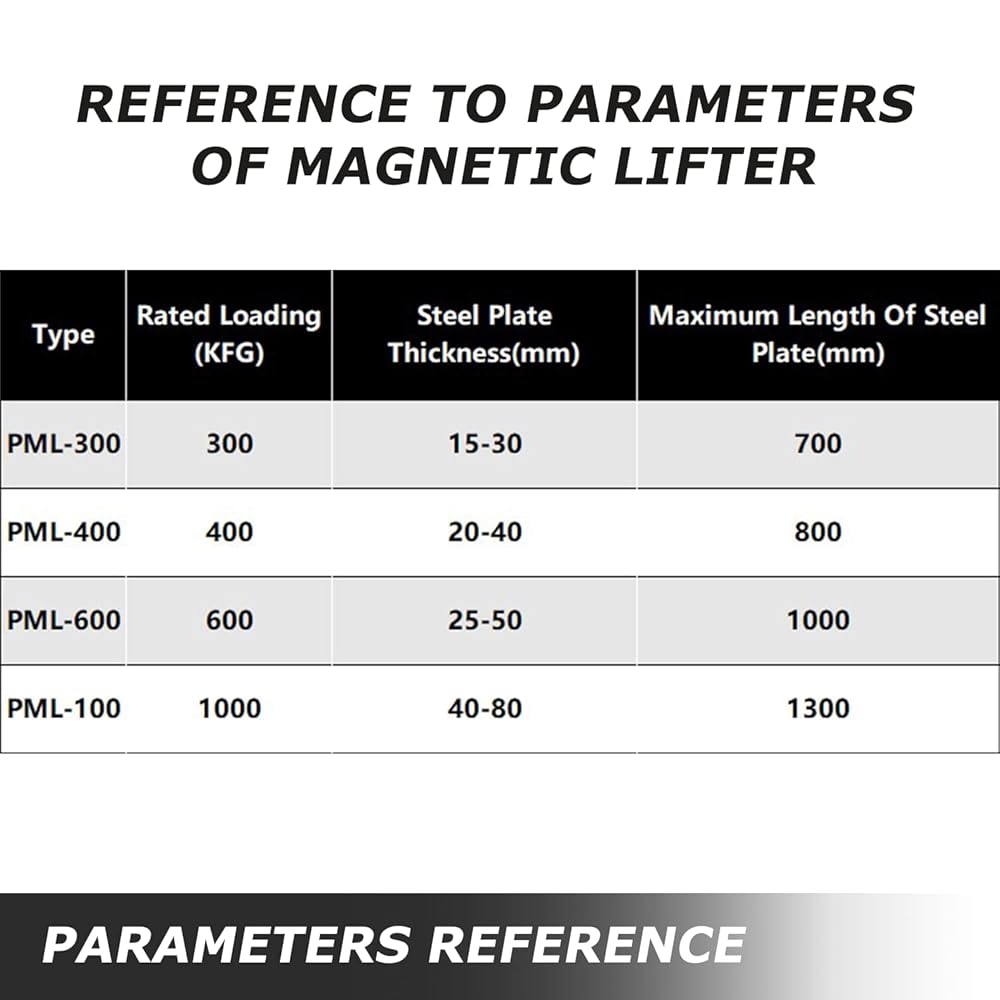 [EASY OPERATION]- The design of a handle wrapped by rubber and several safe bolts improve the products' safety and stability. The rotation of shaft is convenient to control the magnet lifter. It turns left to open the suction and right to close it.
