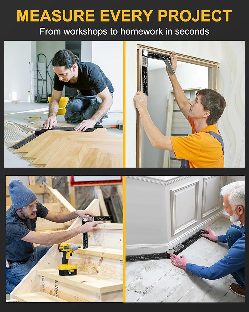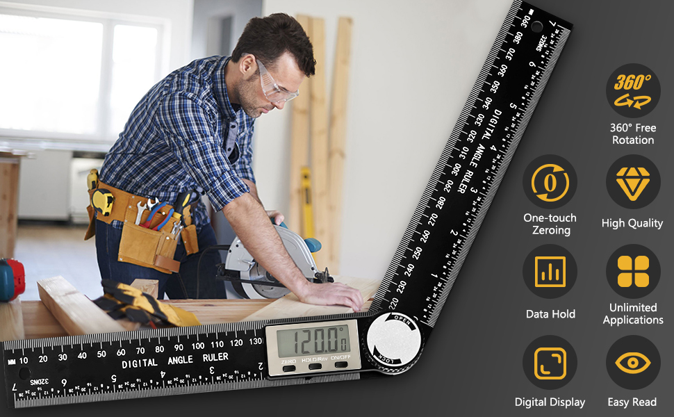 Accurate 360° Measurement: This digital protractor measures 0–360° with ±0.3° accuracy and 0.05° resolution. Built-in ruler spans up to 15.7 in (400mm). From framing to furniture making, get clean joints, accurate angles, and fast results—every time
