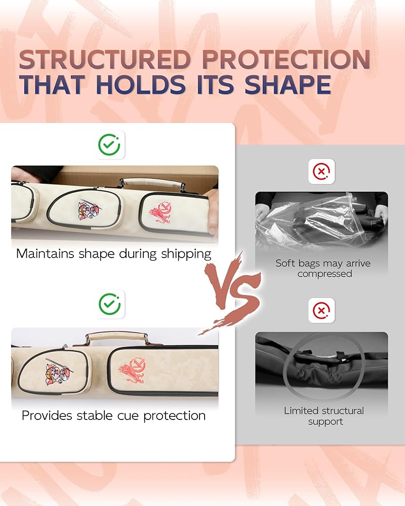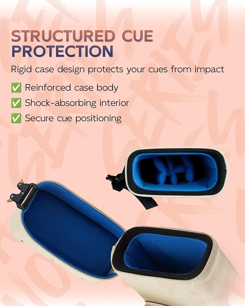 Hard Pool Cue Case with Structured Protection Reinforced hard case design helps protect cues from pressure, bumps, and daily transport wear. A better option than a soft cue stick case for players who want more stable support.