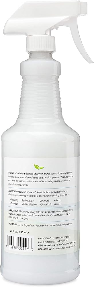 • PLANT BASED ODOR ELIMINATOR: The Fresh Wave IAQ Liquid helps eliminate smells from fabrics and the air for ideal odor control at home or commercial and industrial spaces. The blend is engineered from plant oils, bio-based surfactant, and water.