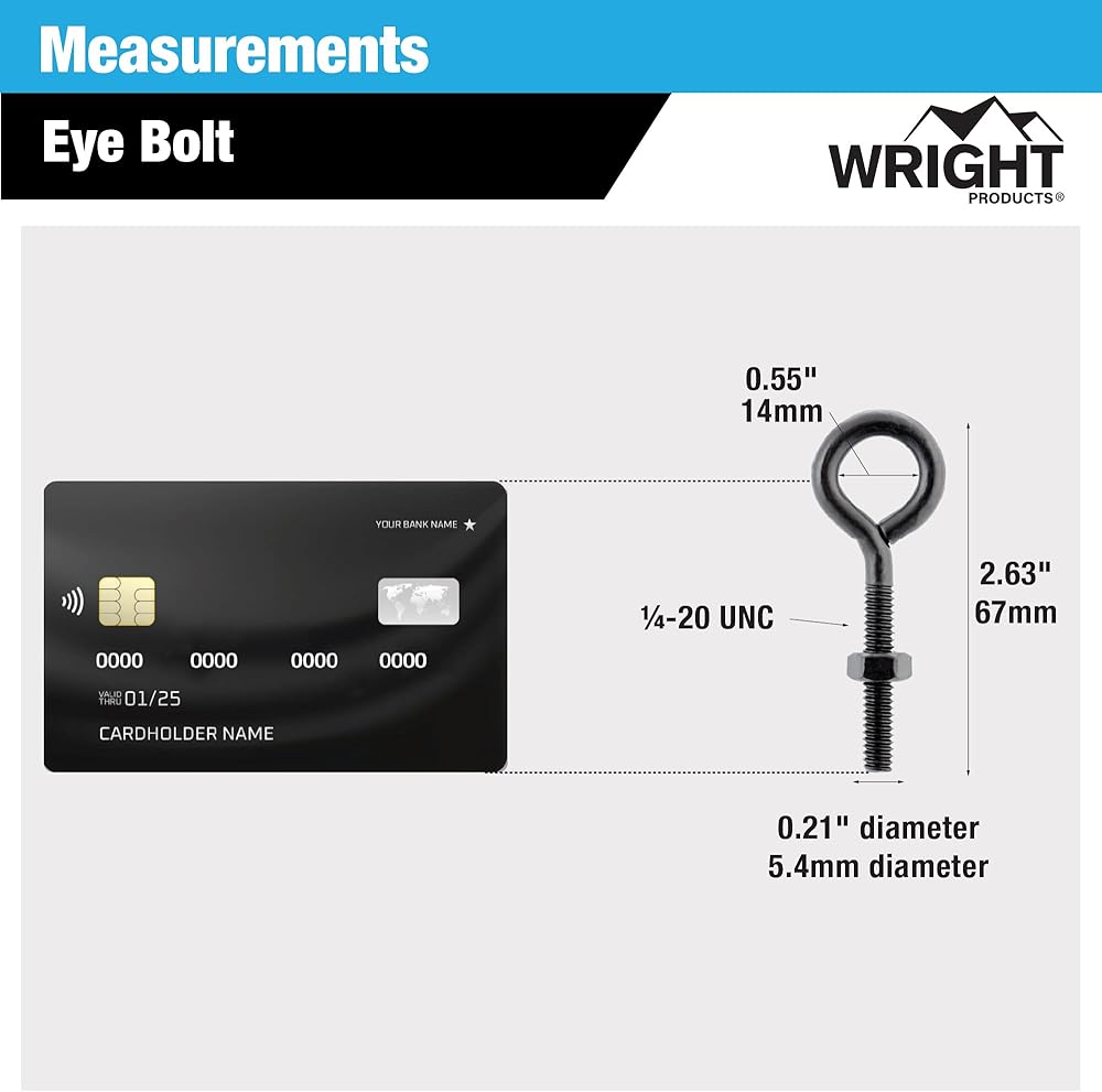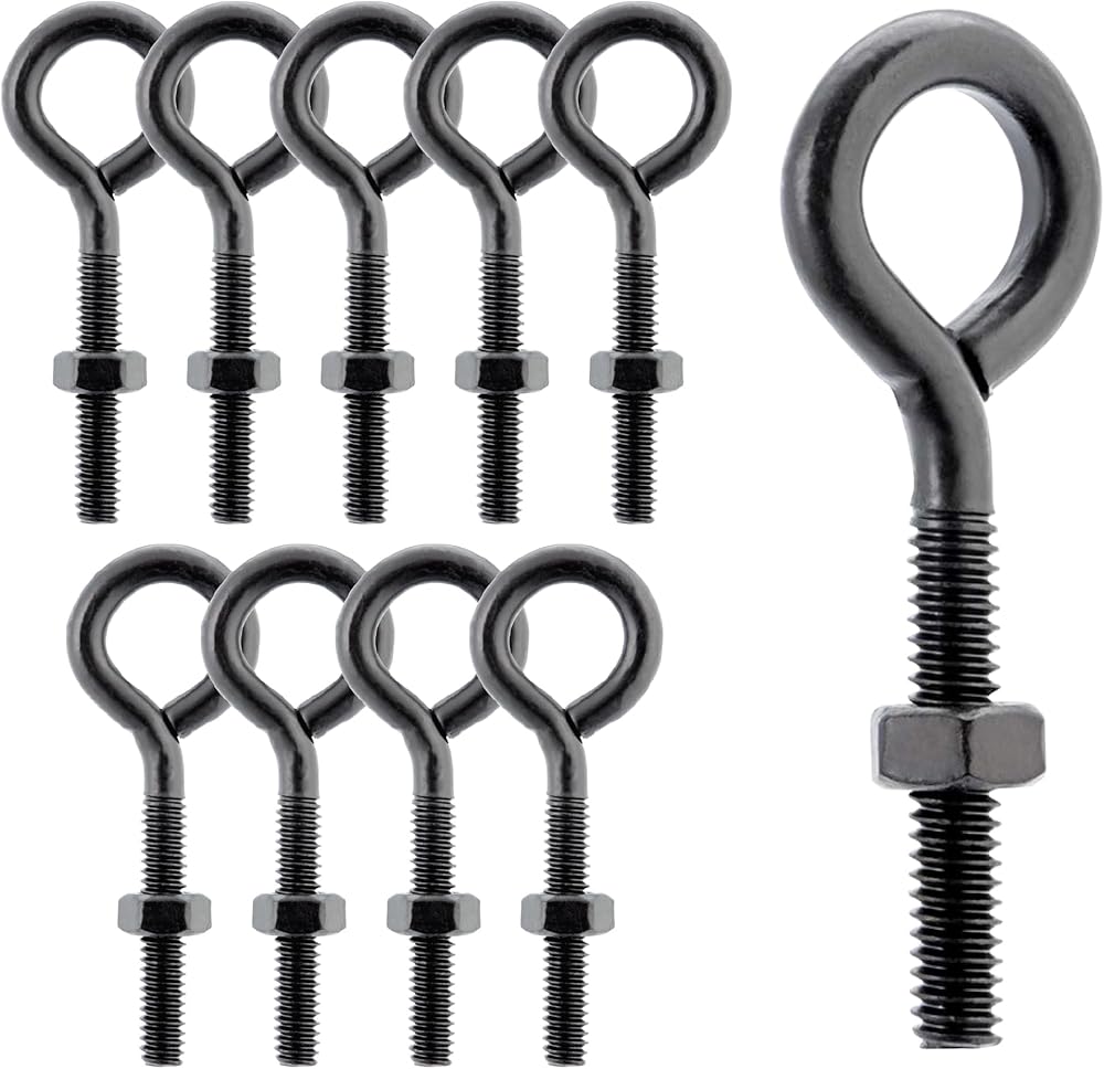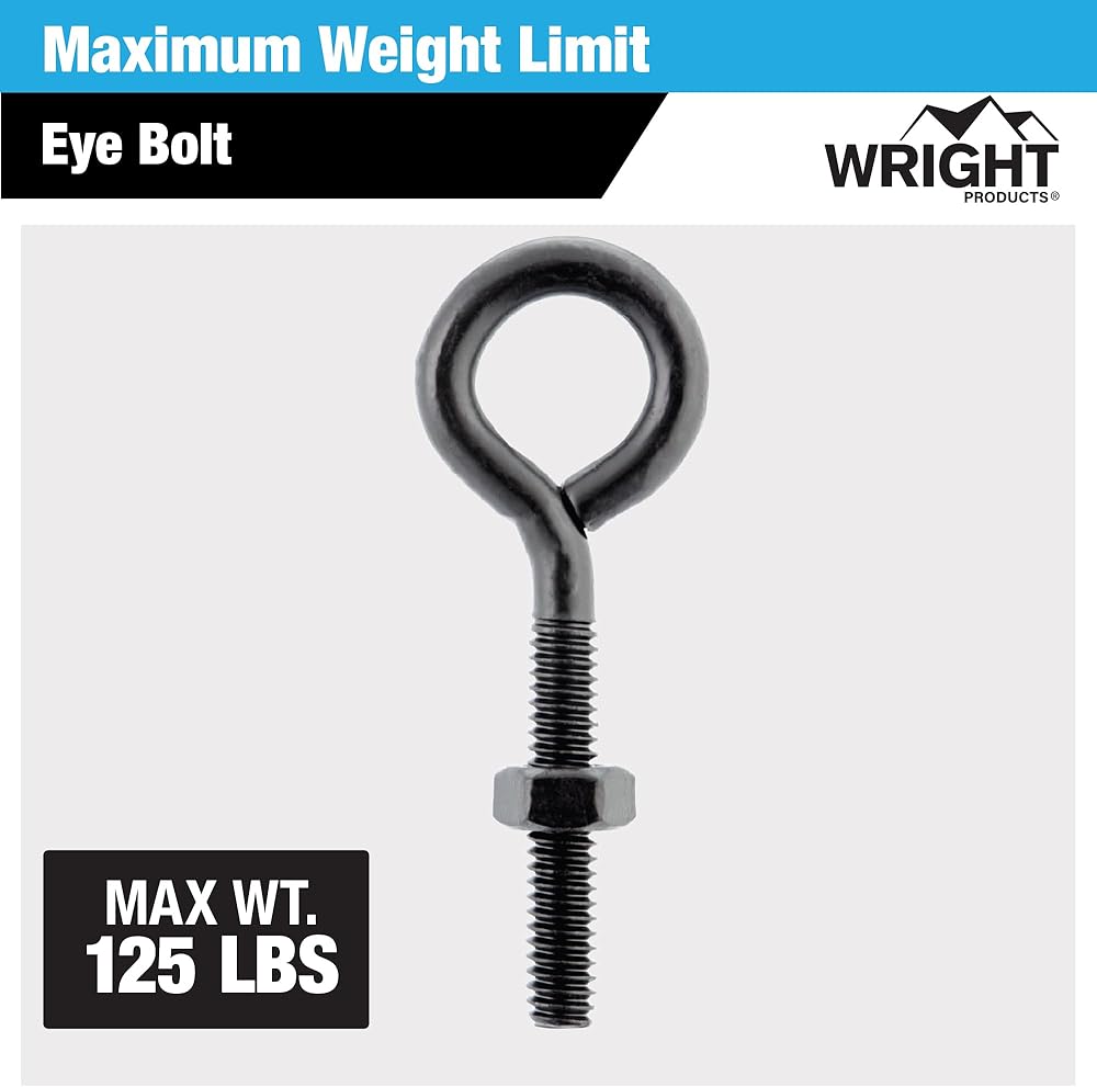 Wright Products Eye Bolt, 10-Pack, 2.6 inch x .25 inch, Heavy-Duty, Weather-Resistant for Outdoor & Indoor Use - Multipurpose Eye Bolt for Hanging Plants, Decorations, DIY Projects, Matte Black