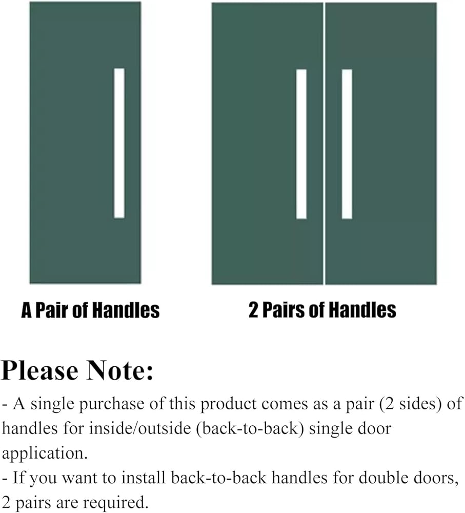 - Each purchase consists of a pair of handles for a single door. For double doors, two pairs are needed.