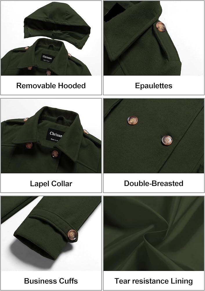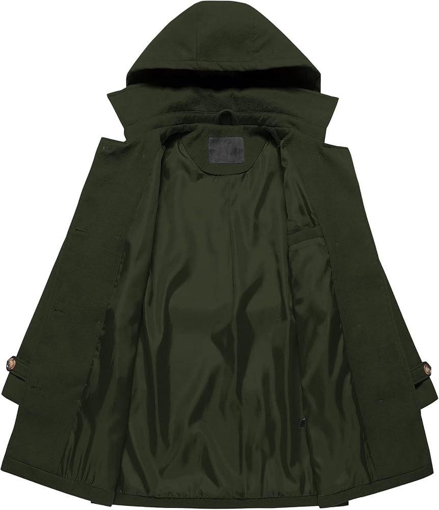 🎀【Resistant Cold Wind】 This Winter Wool Coat is designed with a detachable hood to resist the cold wind anytime and anywhere. The length of the coat covers the hip perfectly, and the cold wind will not blow into the body.High-density soft fabric, Effectively resist cold weather. Machine washable fabric, it will not fade, shrink, and wrinkle after washing. you can wear it straight to work!