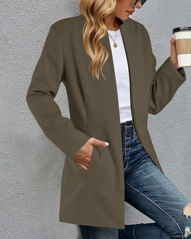 FEATURES:Two hand pockets, long sleeve, Single Breasted,classic notch Stand-up collar, Open Front Coat,A-line, Longline Coat, Fully Lined women overcoat.