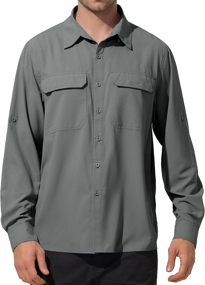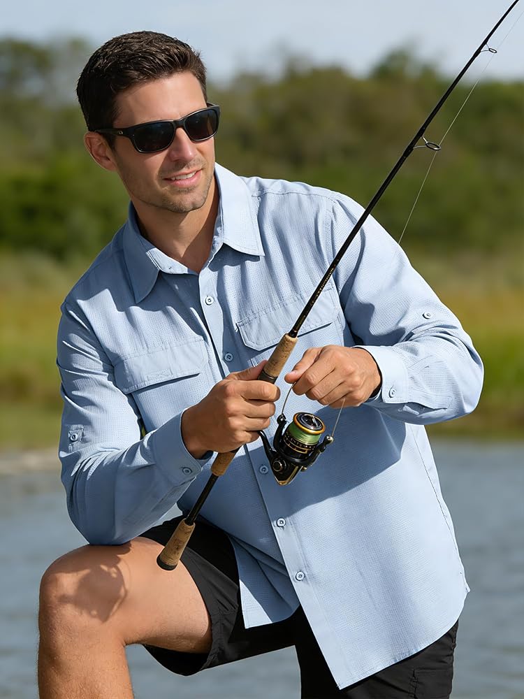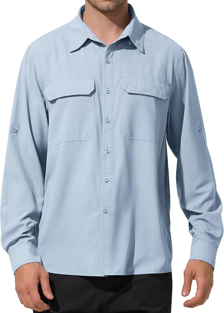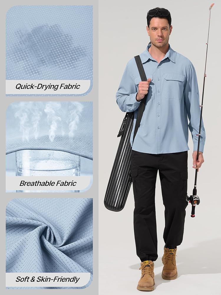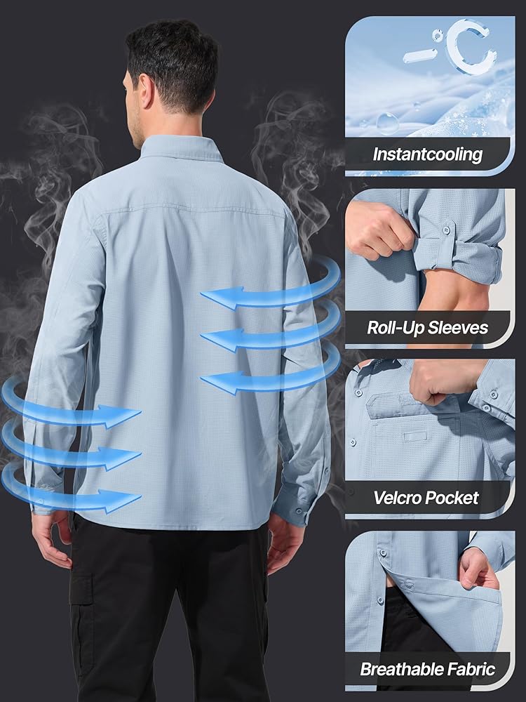 UPF 50+ Sun Protection for Outdoor Safety – Made from 100% polyester, this mens fishing shirts features UPF 50+ technology that effectively blocks harmful UVA and UVB rays, making it one of the most reliable sun protection shirts for men and spf shirts for men for long outdoor exposure.
