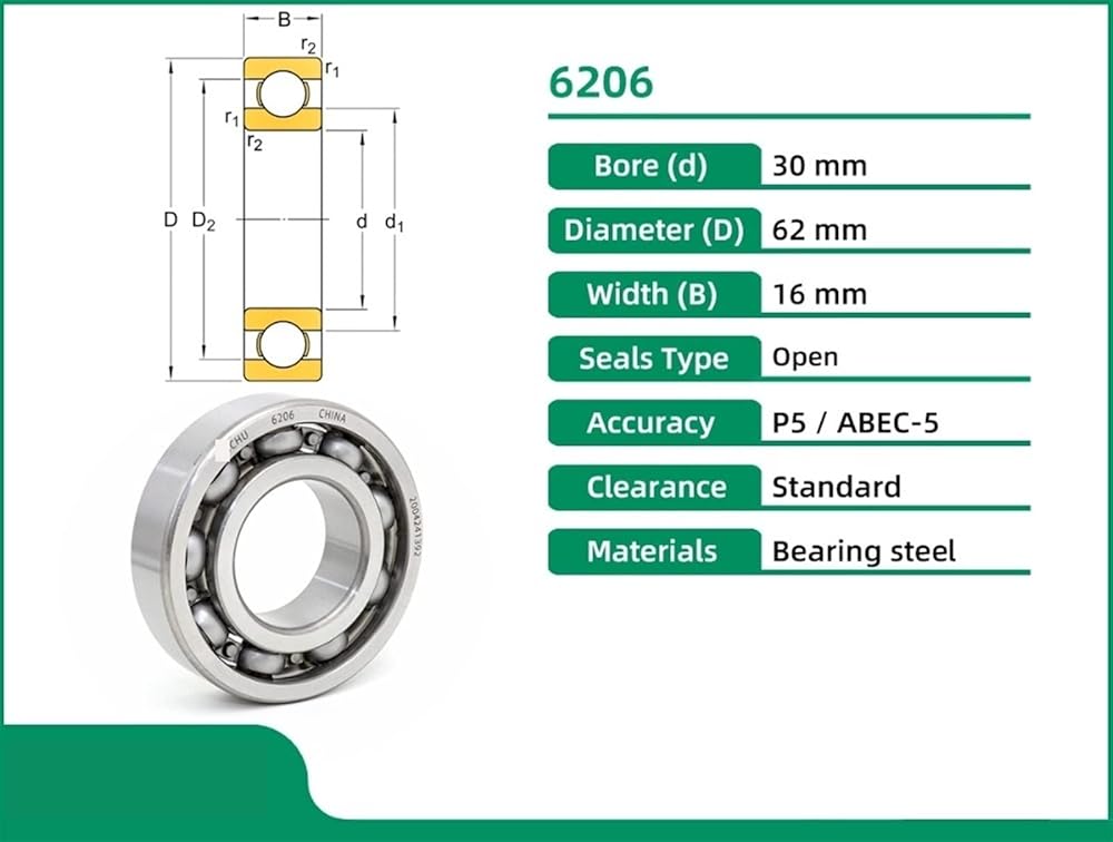 6206 P5 30X62X16 Bearing ABEC-5 Open Single Row Deep Groove Ball Bearings Metric Steel Cage 1Pcs