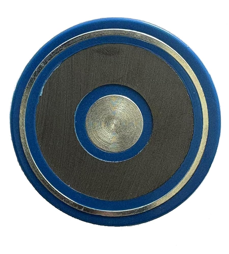 الحلقة الخارجية للمغناطيس مغلفة بغلاف بلاستيكي أزرق، مما يوفر المتانة والحماية