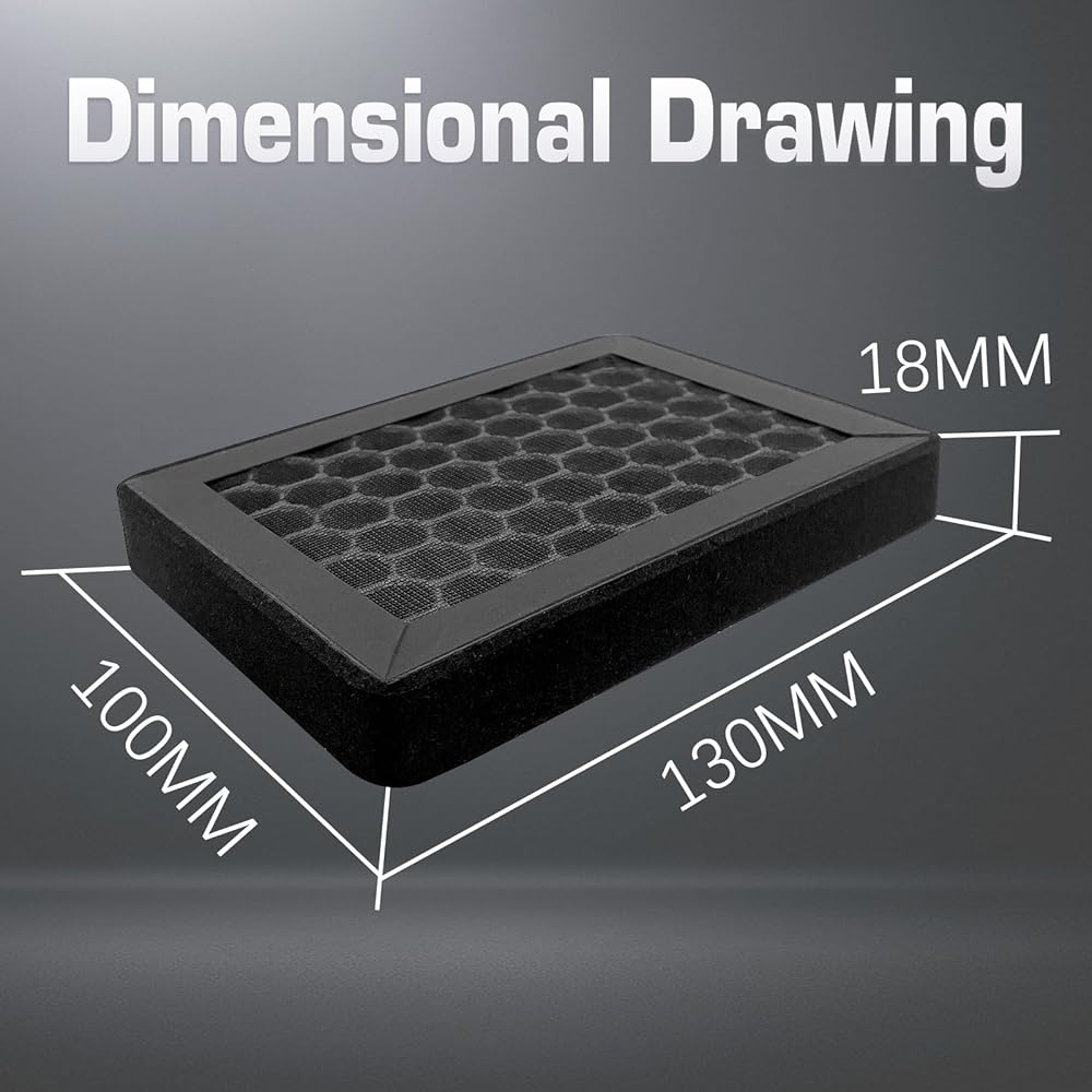 Perfect Fit & Easy Installation: Standard size: 130mm × 100mm × 18mm. Designed as compatible Bambu Lab P2S parts, the filter installs easily into the external exhaust housing. Regularly replacing your p2s filter guarantees consistent airflow and maximum purification efficiency, protecting both your health