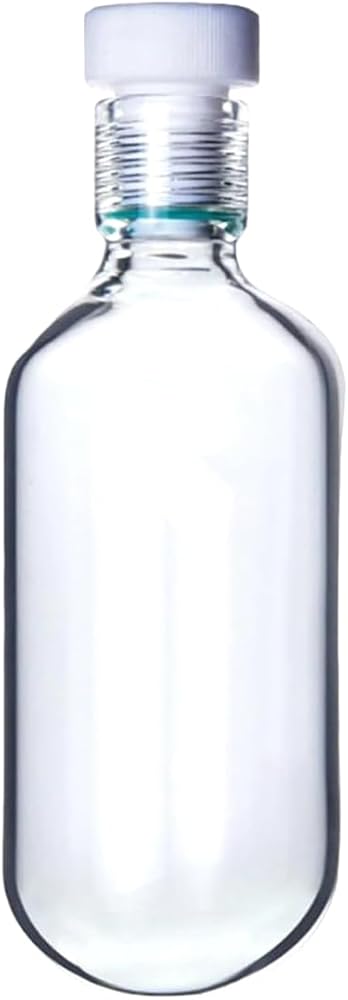Heavy-wall vessels are in round bottom . They feature an internal thread for use with a 15mm PTFE bushing pressure seal. These pressure vessels are made of high quality borosilicate glass, heavy wall design, chemically resistant, durable and reusable. Max pressure is 0.6mpa, use within the rated pressure range, excessive pressure can lead to the risk of blowout. The solvent in the bottle should not exceed one-third of the volume of the bottle. The material of the O-ring at the top of the threaded port plug is not suitable for all solvents, if you find that the O-ring is corroded, please stop the experiment. This product can not be used for microwave and oven heating, when the lid is screwed in, do not continue to twist hard when the O-ring and the inside have been fitted.