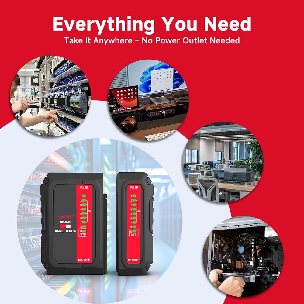 All-in-One Compatibility: Works with RJ45, RJ11, RJ12 interfaces and CAT5, CAT6, CAT7 UTP network cables as well as telephone cables; ideal for both home and office network setups, eliminating the need for multiple testing tools