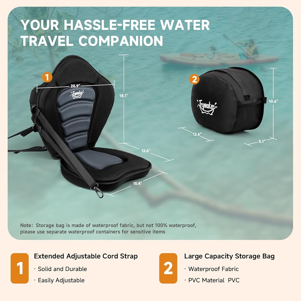 Quality in the Details: The sup seat comes with sturdy, adjustable straps that allow you to customize comfort angle. The large PVC storage bag easily holds personal items or first aid supplies, and its waterproof fabric helps keep contents dry, ensuring your safe travels